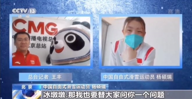 當(dāng)加藤問冰墩墩:“睡覺的時(shí)候會脫掉這身宇宙服一樣的衣服嗎?”冰墩墩左右搖晃不知道怎么回答,義堂馬上出來維護(hù)冰墩墩“這是秘密!”