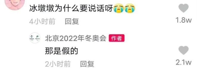 吉祥物是集造夢、情懷、紀(jì)念于一體的具象化形象,營銷冰墩墩扮演者顏值,報(bào)道冰墩墩扮演者的幕后“花絮”等,都是毀好感的失敗操作,很多網(wǎng)友留言求饒“永遠(yuǎn)不要讓冰墩墩說話行嗎,皮下我也不希望知道”。