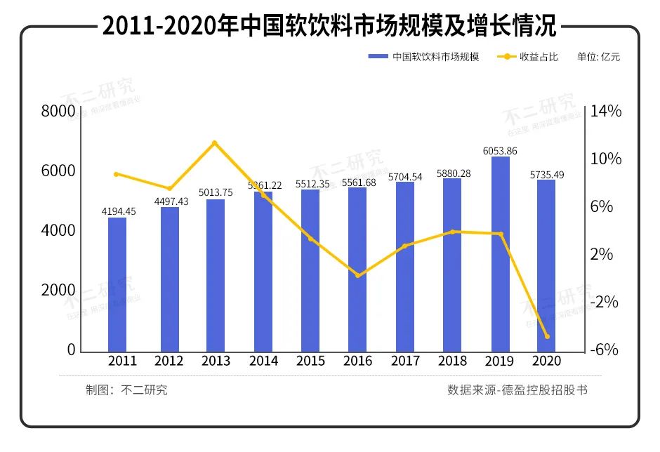 在「不二研究」看來,冰峰3.3億銷售額還不到中國市場(chǎng)銷售額千分之一。更值得關(guān)注的是,前瞻研究院《中國軟飲料行業(yè)產(chǎn)銷需求與投資預(yù)測(cè)分析報(bào)告》顯示,我國軟飲料市場(chǎng)規(guī)模隨著市場(chǎng)趨于飽和,增速開始逐漸趨緩。這就意味著未來極有可能出現(xiàn)各大軟飲品牌相互搶占市場(chǎng)份額的局面。