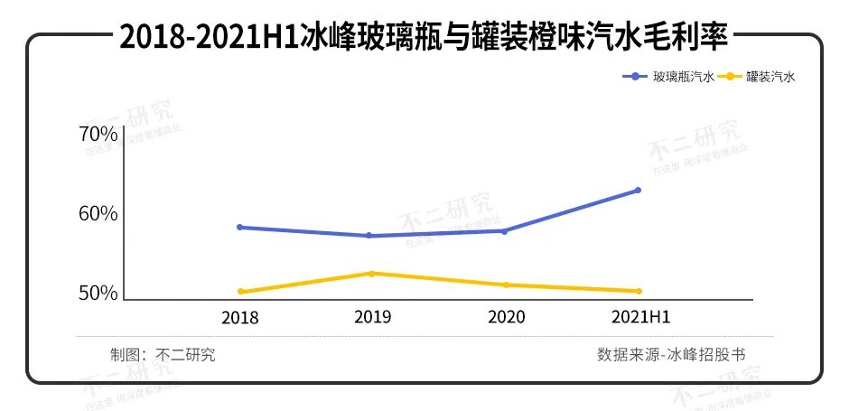 從冰峰主要產(chǎn)品毛利率來看,2018-2020年,“橙味汽水”的毛利率基本穩(wěn)定在50%以上,也就是說賣出一瓶冰峰汽水的毛利至少在其售價(jià)的一半以上。