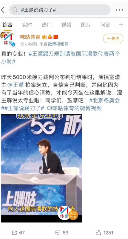 日前,話題“王濛說踢刀了”登上微博熱搜榜,話題閱讀量達3.4億。這是因為在男子5000米接力半決賽中,李文龍摔出賽道,正當大家擔心時,在咪咕解說的王濛卻信誓旦旦地說這是踢刀了,肯定判進,結果果然如王濛所預料。之所以這么肯定,是因為她曾經(jīng)歷過同樣的事情,并且向國際滑聯(lián)技術代表請教了整整兩個小時這種情況下的規(guī)則。
