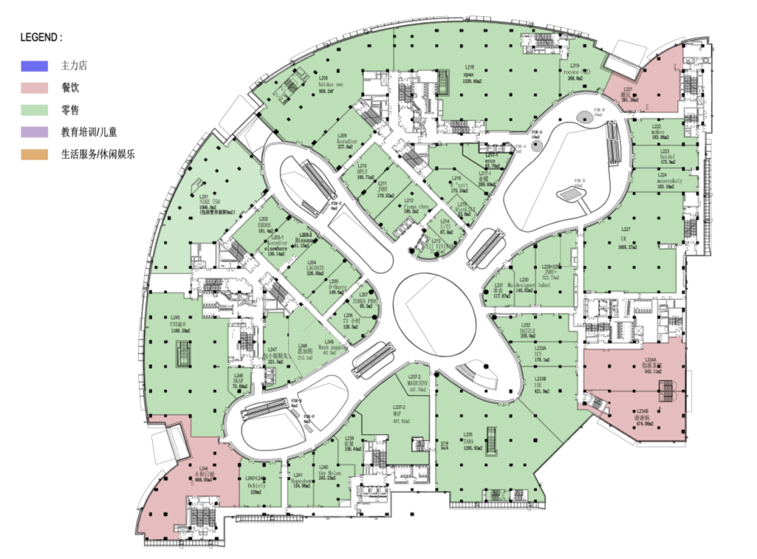 這既是因?yàn)轫?xiàng)目本身主次力店面積占比較大,同時(shí),也與體量增大導(dǎo)致的樓層數(shù)量增加有關(guān),因此中間樓層同樣需要有足夠吸引力的王牌店鋪,進(jìn)行客流在垂直方向上的引導(dǎo)。
