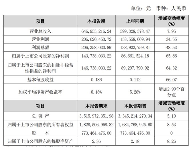根據(jù)公告,2021年公司實(shí)現(xiàn)營業(yè)收入6.47億元,同比增長7.95%;實(shí)現(xiàn)歸屬于上市公司股東的凈利潤1.44億元,同比增長65.86%。