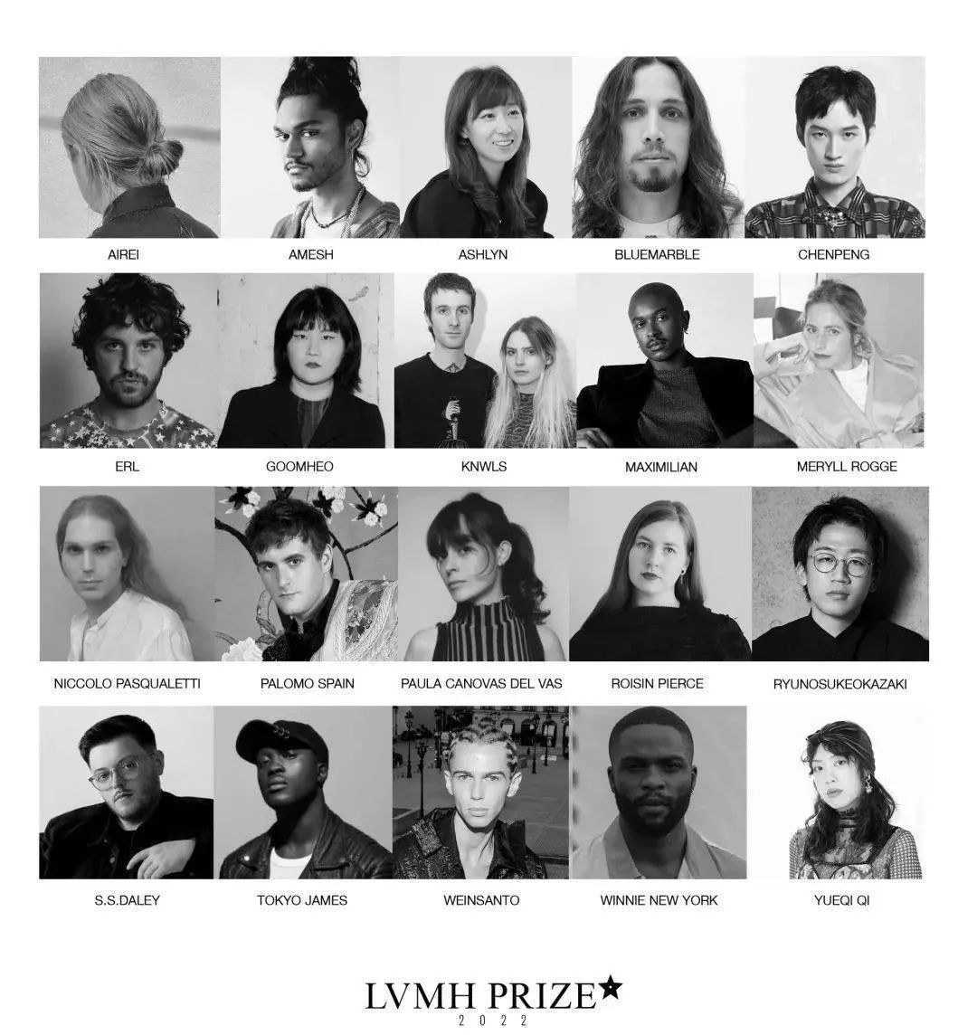 *中國(guó)設(shè)計(jì)師CHEN PENG陳鵬(第一排左起第5位)和Yueqi Qi戚玥(第四排左起第5位)入圍2022年最新出爐的LVMH Prize半決賽名單|圖據(jù)網(wǎng)絡(luò)