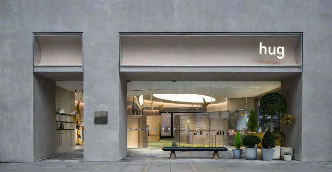 以hug為例,2021年開(kāi)業(yè)的晶融匯一店外立面主色調(diào)為沉穩(wěn)銀色與藍(lán)色,表達(dá)其理性、冷靜、客觀的態(tài)度????
