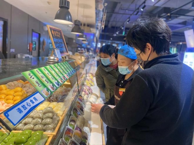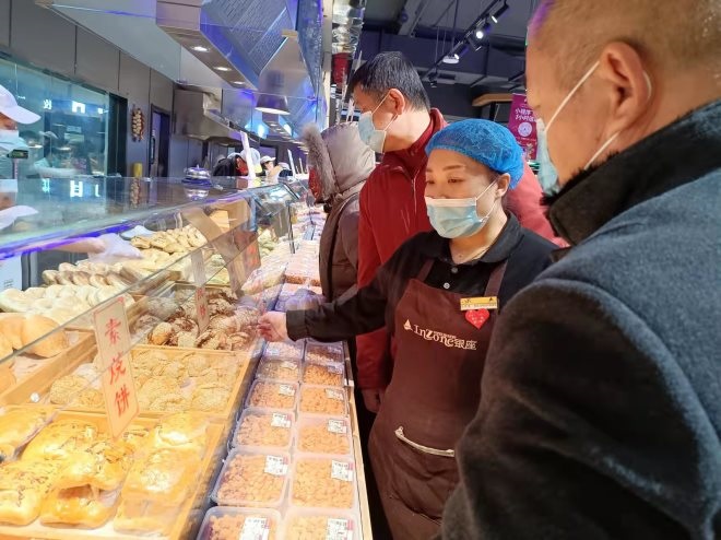 有位老顧客,每十余天會來選購四十多個紅豆餅,在溫情互動中,陳克美得知紅豆餅對顧客而言口感微甜且每次免不了等候。她便主動留下自己的電話,調低糖分含量提前完成定制,老顧客到店即取;有位膠東阿姨,年前來購買膠東大饃饃,可數量不夠,陳克美主動聯系廠家卻得知已停止制作。望向那雙失望遺憾的眼神,她帶領團隊擼起袖子開始制作,反復研制后送貨上門,這份意料之外的新春驚喜贏得了顧客的高度認可。