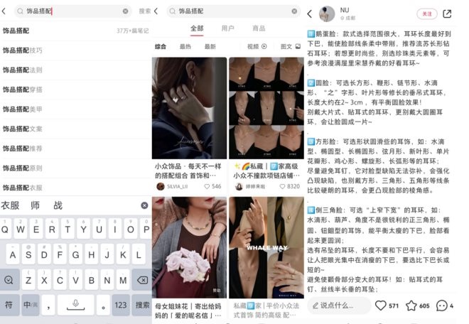 小紅書上關(guān)于#飾品搭配#的筆記超37萬(wàn)篇