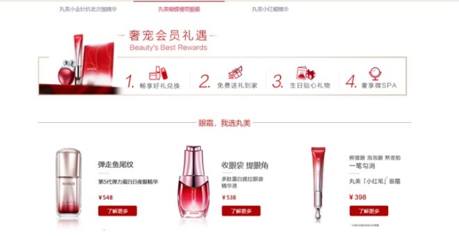 而丸美一直傾向于全渠道營銷模式,線上線下雙輪驅(qū)動,雖然進入線上渠道不算太晚,但對線上渠道用力不足使其喪失了先機。