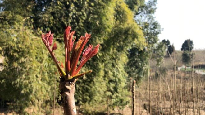 在大竹縣椿芽直采基地,香椿樹已出芽