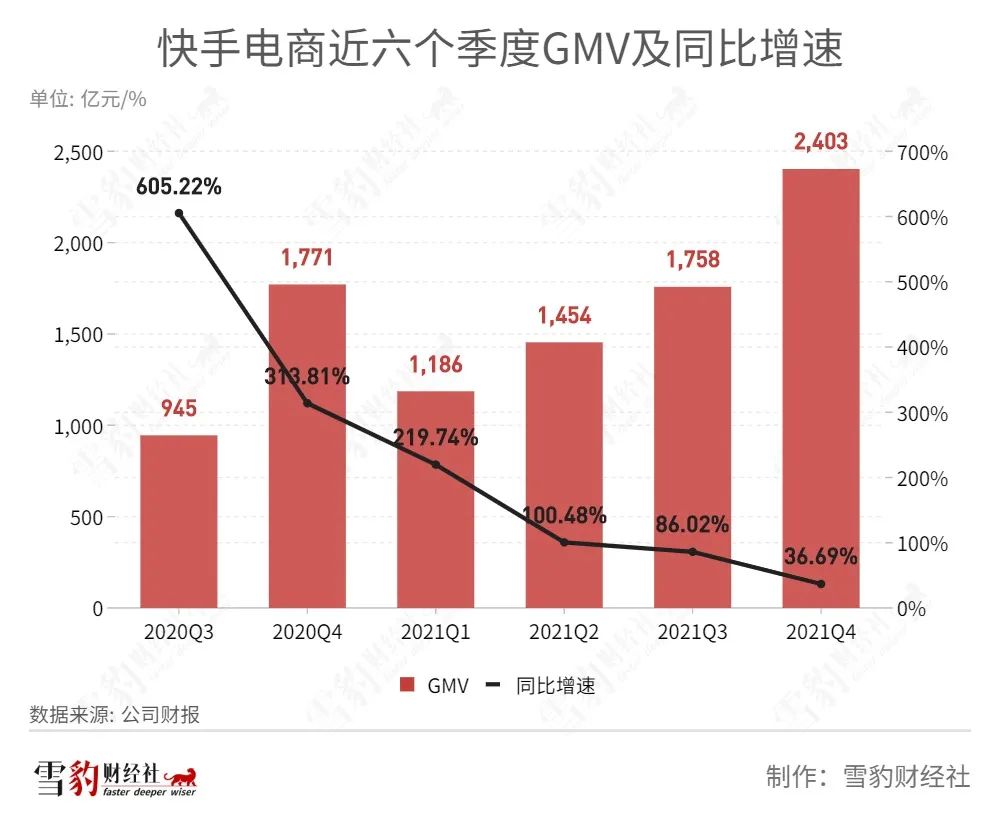 快手電商作為消費直播平臺,2021年6800億的GMV,與抖音有明顯差距。