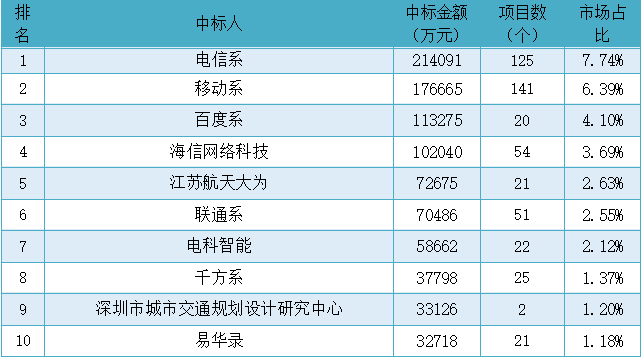 2021年我國智能交通千萬項(xiàng)目中標(biāo)企業(yè)榜