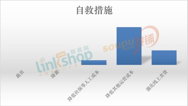 面對不容樂觀的經(jīng)營形勢,商場也紛紛展開了自救行動(dòng),而在“裁員、降薪、降低社保等人工成本、降低其他運(yùn)營成本、強(qiáng)化線上賣貨”五個(gè)選項(xiàng)中(可多選),參與問卷的經(jīng)營者們均沒有選擇裁員和降薪的自救方式,而是選擇與員工共克時(shí)艱。其中,降低其他運(yùn)營成本獲得8成票數(shù),強(qiáng)化線上賣貨獲得3成票數(shù),10%的人選擇了降低社保等人工成本。