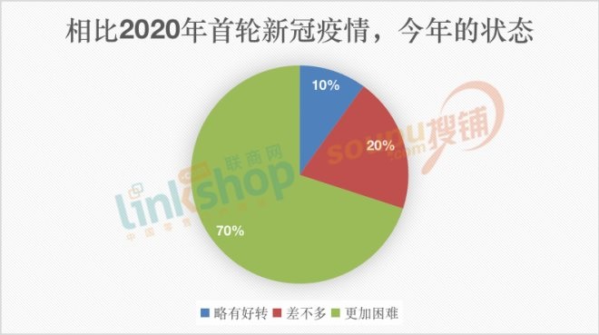 在問卷調(diào)查中,70%杭州商場的經(jīng)營者認(rèn)為,相比2020年首輪新冠疫情,今年商場的經(jīng)營形勢變得更加困難;20%的經(jīng)營者表示狀態(tài)同比2020年差不多;只有10%表示相比2020年略有好轉(zhuǎn)。