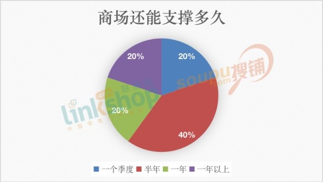 同時(shí),大家認(rèn)為如果疫情按照目前狀況延續(xù)或擴(kuò)大,商場很可能難以為繼。其中,有20%經(jīng)營者認(rèn)為若疫情影響持續(xù)擴(kuò)大,他們只能再支撐一個(gè)季度;40%的人表示還可以堅(jiān)持半年;20%認(rèn)為還能支撐1年;20%的經(jīng)營者稱可以再支撐一年以上。