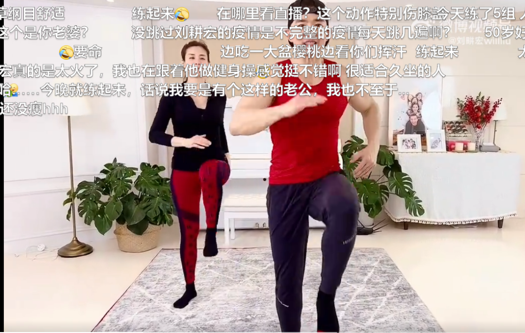 第二是順應(yīng)了疫情下的全民健身熱潮。直播過(guò)程中,劉畊宏和妻子會(huì)不停切換進(jìn)行多組毽子操、拳擊等運(yùn)動(dòng),全程附帶動(dòng)作講解并喊口號(hào)為粉絲加油打氣。這種直播方式避免了對(duì)場(chǎng)景的苛刻要求,一定程度上滿足了大眾運(yùn)動(dòng)的需要。