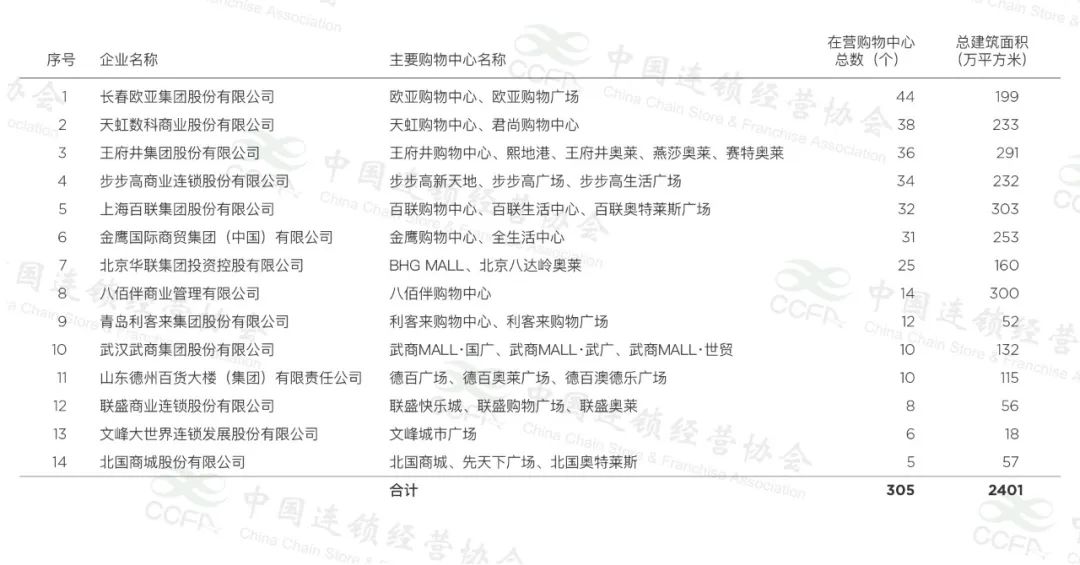 數(shù)據(jù)來(lái)源:2020、2021年中國(guó)購(gòu)物中心TOP企業(yè) 中國(guó)連鎖經(jīng)營(yíng)協(xié)會(huì)整理