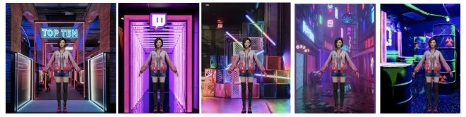 此案空間中聯華弱化了所有材料組合,模擬宇宙空間,通過色彩肌理、材質肌理、微光的表達,通過虛擬人物與現實人的互動結合,將時間、空間、物質的鏈接來詮釋次此設計主題。聯華通過設計手法激發(fā)人的五感六覺,通過看見的、看不見的,觸碰的到的、觸碰不到的,嗅的到的,嗅不到的去探索我們已知的或未知的生活方式。很多博主聽聞有新奇的裝飾和虛擬人物,懷著好奇之心前來打卡拍照,也是在現實生活中都是第一次接觸到虛擬偶像。