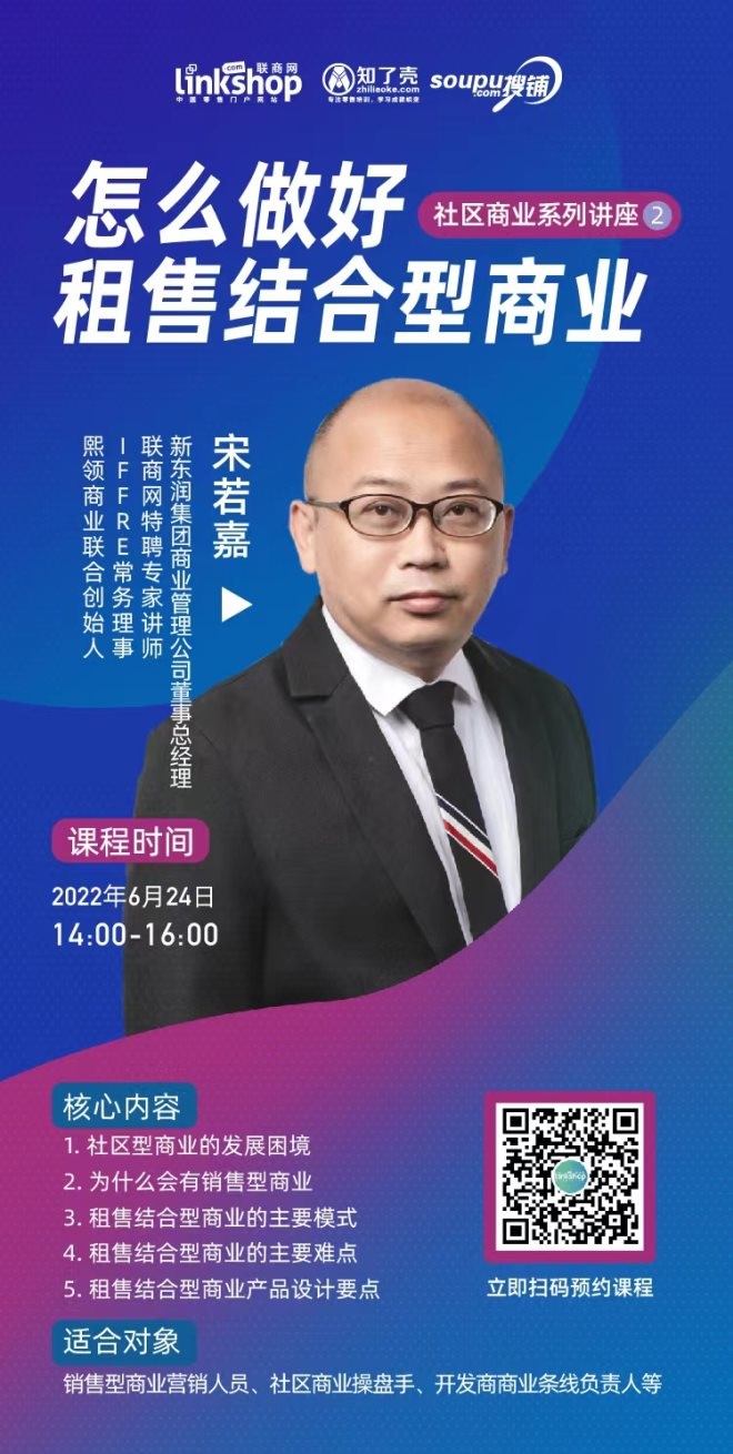 6月24日(周五)14:00-16:00 熙領(lǐng)商業(yè)攜手聯(lián)商網(wǎng)&知了殼&搜鋪重磅推出【社區(qū)商業(yè)系列講座2——怎樣做好租售結(jié)合型商業(yè)】,掃二維碼可以預(yù)約看直播。