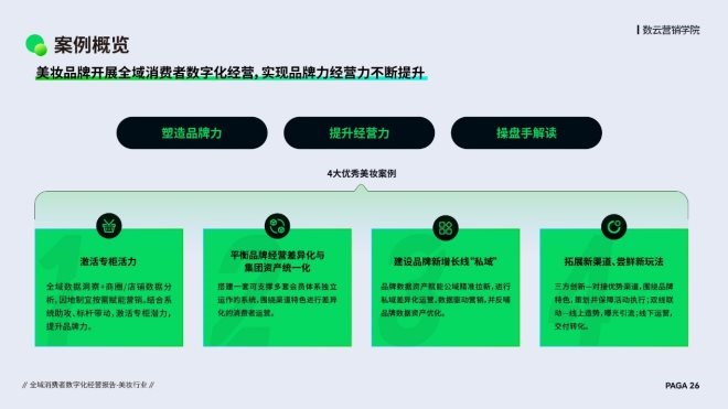 為此,白皮書(shū)案例部分從數(shù)云服務(wù)的近千家美妝品牌中,精選出不同發(fā)展階段的美妝品牌,從該階段品牌的通用需求點(diǎn)切入,輸出“產(chǎn)品+服務(wù)”的組合拳打法,如