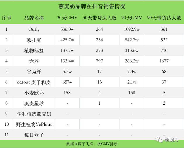 新腕整理了兩份燕麥奶品牌在淘寶和抖音銷(xiāo)售表,以O(shè)atly線上業(yè)務(wù)情況作為參照,這些品牌經(jīng)營(yíng)情況如何?