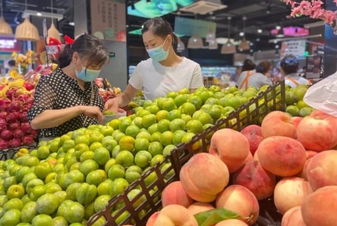 水果區(qū),商品采用散稱和預(yù)包裝疊拼陳列的方式,讓“新鮮”觸手可及。