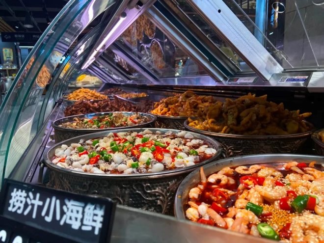 此外,超市還進駐了廖記棒棒雞、清時明月、仙桃毛嘴、現(xiàn)撈鹵味、哈爾濱紅腸、恩施熏肉等眾多美食品牌。