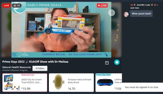 亞馬遜直播間中,一名主播在展示樂高玩具,而只有12人在線觀看。 圖源:亞馬遜官方網(wǎng)站
