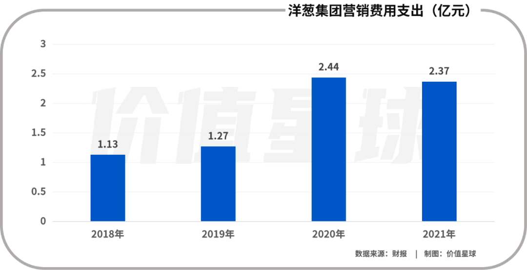 財(cái)報(bào)數(shù)據(jù)也顯示,洋蔥集團(tuán)營(yíng)銷費(fèi)用從2018年的1.13億增長(zhǎng)至2021年的2.27億元,但是毛利潤(rùn)卻從2020的7.79億下降到2021的5.22億。