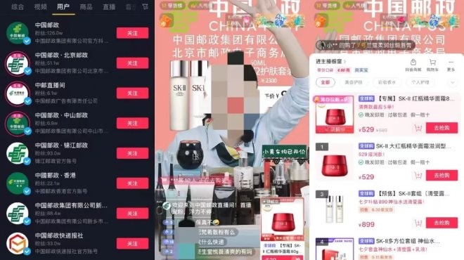 此外,新消費(fèi)Daily注意到,中國郵政近日也開始涉足直播帶貨。今天上午,新消費(fèi)Daily在抖音搜索中國郵政,出現(xiàn)了數(shù)十個相關(guān)賬號,且多個已在開播狀態(tài)。大多數(shù)直播間的賬號主體是中國郵政的各地分公司。