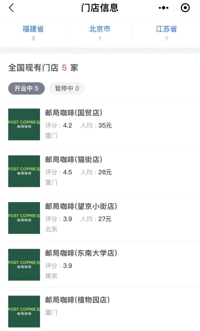 截止到剛剛過去的7月,「郵局咖啡」已經(jīng)相繼在廈門、南京、北京開設(shè)了5家門店。