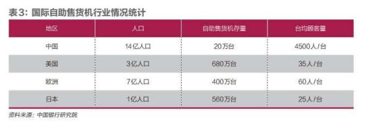 據(jù)中國(guó)銀行研究院的統(tǒng)計(jì),接近20年的發(fā)展,到2013年,國(guó)內(nèi)無(wú)人零售的市場(chǎng)規(guī)模僅僅為19億元,截止2016年末,我國(guó)人均無(wú)人售貨機(jī)的擁有量為4500人/臺(tái),而在日本,平均25人就擁有一臺(tái)自動(dòng)售貨機(jī)。
