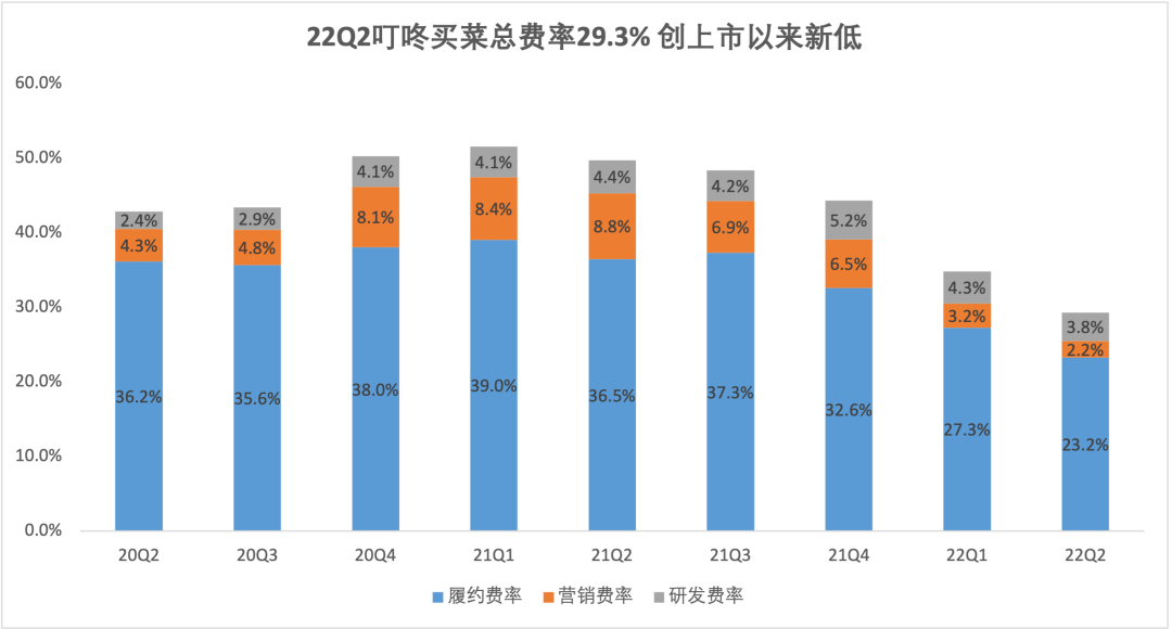其二:叮咚買菜總費率29.3% ,創(chuàng)上市以來新低。