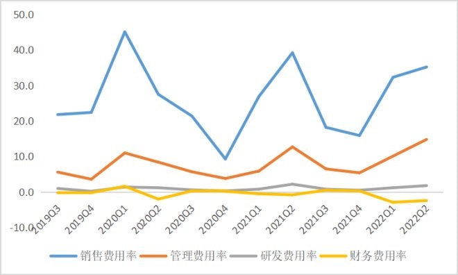 利潤方面,進(jìn)入今年以來,香飄飄在Q1、Q2兩個(gè)季度均錄得単季凈虧損。今年以來,香飄飄銷售成本率中樞較去年明顯上移,銷售費(fèi)用雖環(huán)比減少,但由于收入下降過快導(dǎo)致銷售費(fèi)用率環(huán)比上升,大幅侵蝕了利潤,隨導(dǎo)致了虧損的發(fā)生。