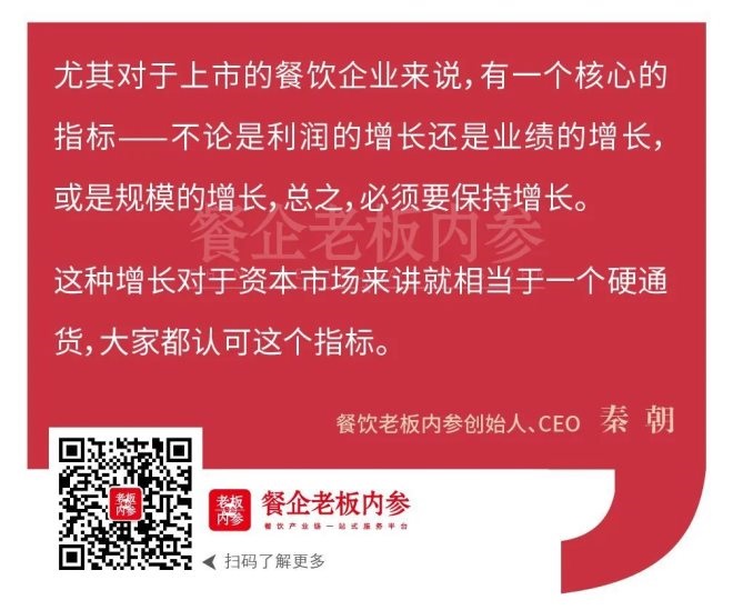 尤其對于上市的餐飲企業(yè)來說,有一個核心的指標——不論是利潤的增長還是業(yè)績的增長,或是規(guī)模的增長,總之,必須要保持增長。