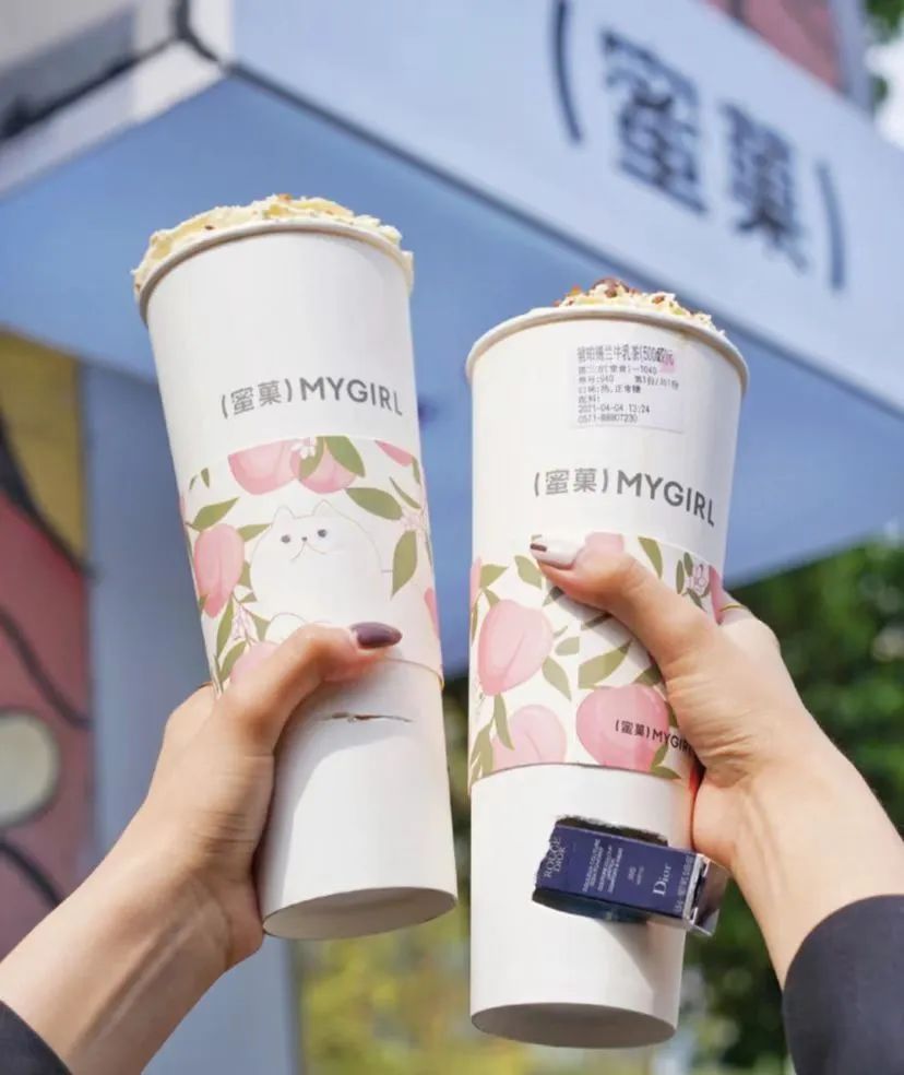 杭州茶飲品牌蜜菓去年推出的盲盒奶茶,個(gè)頭高底部空的中空杯,上方放奶茶,下面就是盲盒,有彩票、發(fā)卡、自助餐券等小禮品,還能開(kāi)出大牌的口紅、眼影、散粉等“隱藏款”。