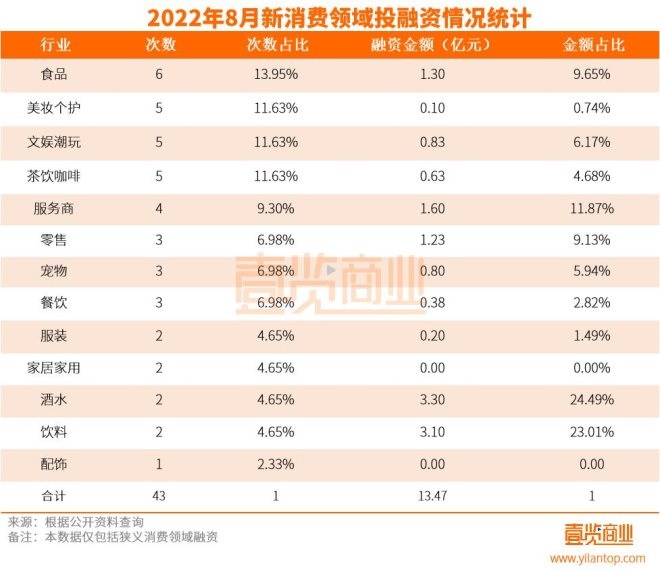據(jù)壹覽商業(yè)不完全統(tǒng)計(jì),8月融資事件一共43起,融資金額約為13.47億元。