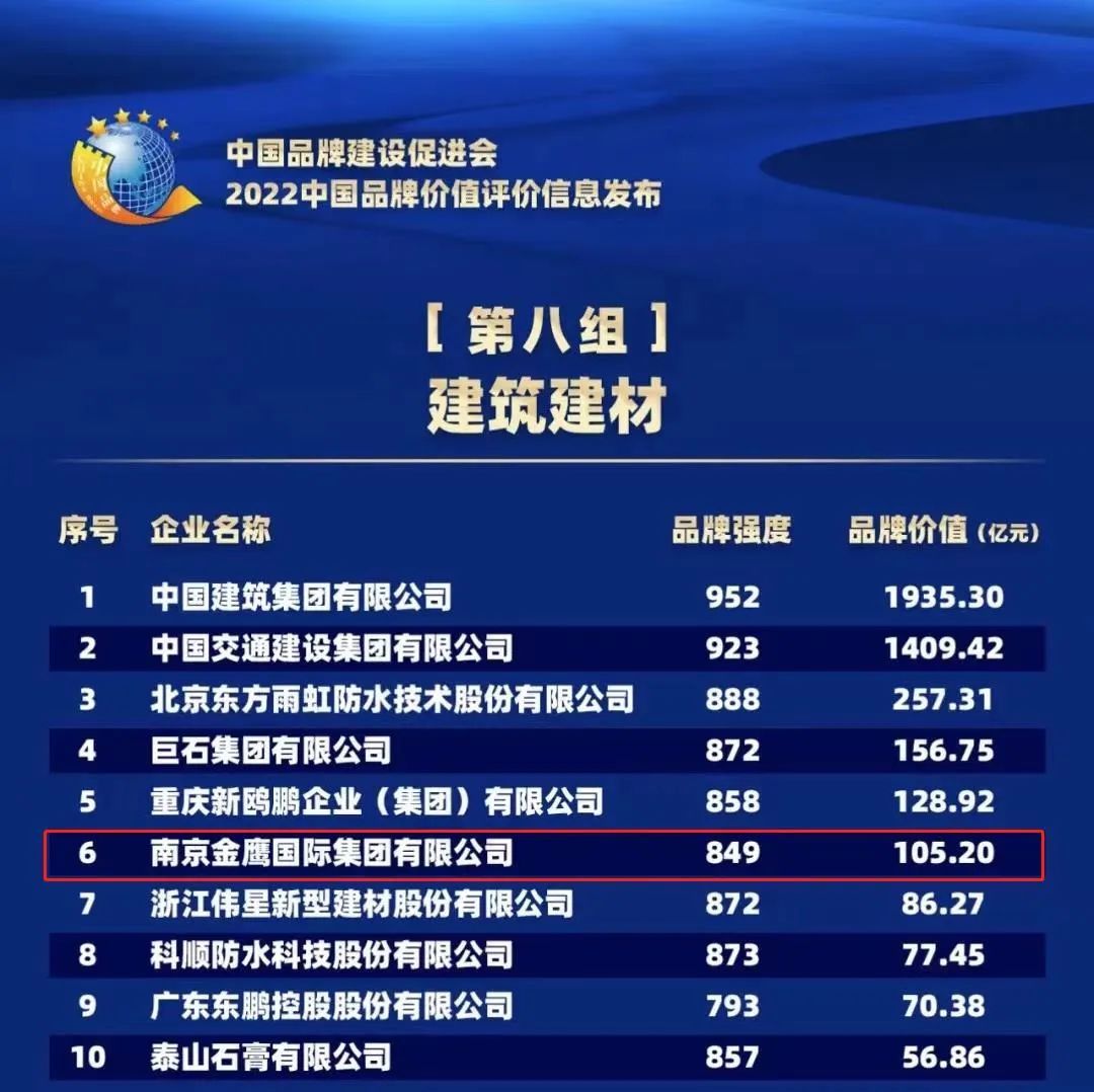金鷹國際集團有限公司以105.20億元在建筑建材領域企業(yè)品牌中位居前位,金鷹國際商貿集團(中國)有限公司以81.06億元品牌價值在零售業(yè)領域中名列第三。