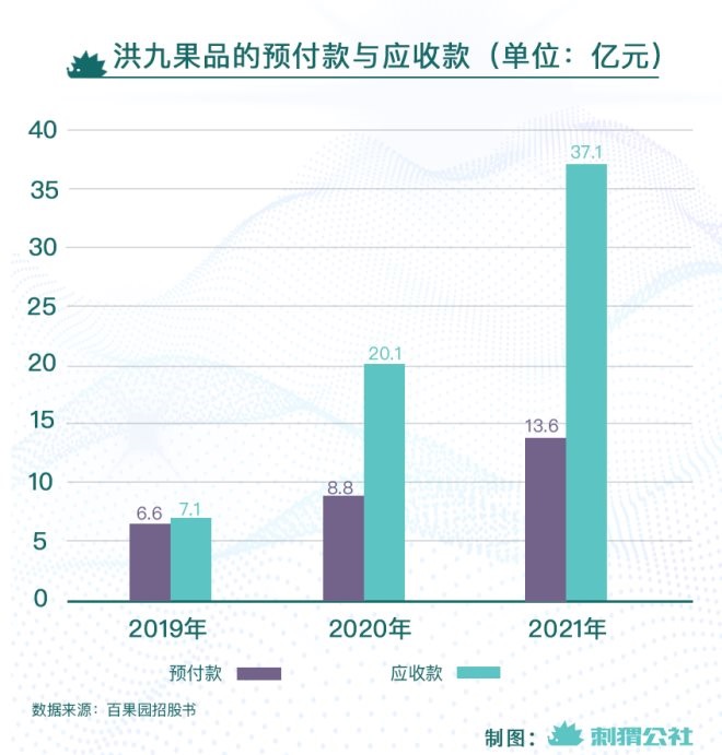 根本原因其實指向的是洪九果品的經(jīng)營模式,洪九果品賺的就是整合供應(yīng)鏈的利潤,它會更像是一個更像“工業(yè)互聯(lián)網(wǎng)平臺”,側(cè)重于前端的直采,后端的分銷,所以需要對接的供應(yīng)商、經(jīng)銷商越多,第三方付款越多,風(fēng)險相對來說就越大。