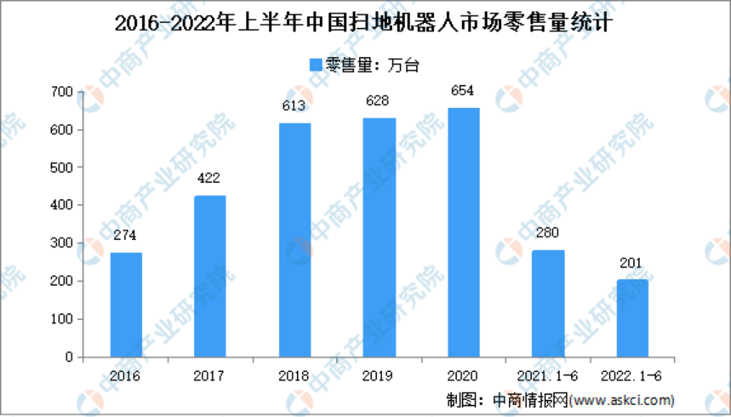 從行業(yè)數(shù)據(jù)來看,歷經(jīng)兩年的雙位數(shù)高增長后,今年上半年,掃地機行業(yè)增長明顯放緩,“擱淺”2022。奧維云網(wǎng)(AVC)預(yù)計,今年全年,掃地機器人的零售量為462萬臺,同比下滑20.2%。