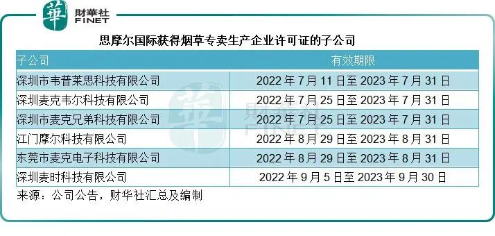 至于思摩爾國(guó)際,今年下半年,該公司有六家全資子公司獲得煙草專(zhuān)賣(mài)生產(chǎn)企業(yè)許可證。