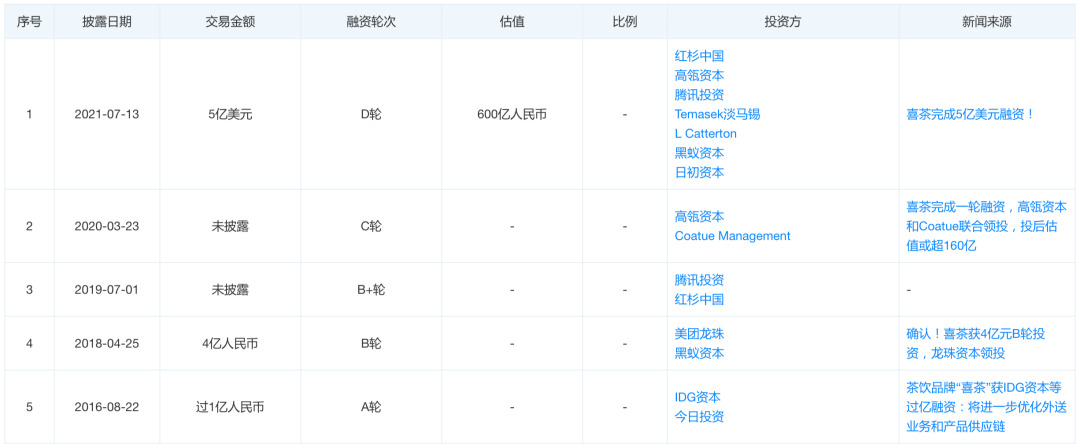 據(jù)財(cái)新報(bào)道,今年3月有消息稱,“古茗最新一輪的估值在400億~450億元,茶百道給自己定下的估值也在200億元,書(shū)亦燒仙草約100億元!边@是前三品牌的情況。與之對(duì)比,喜茶去年7月D輪,也是最近一輪融資后估值達(dá)600億元。
