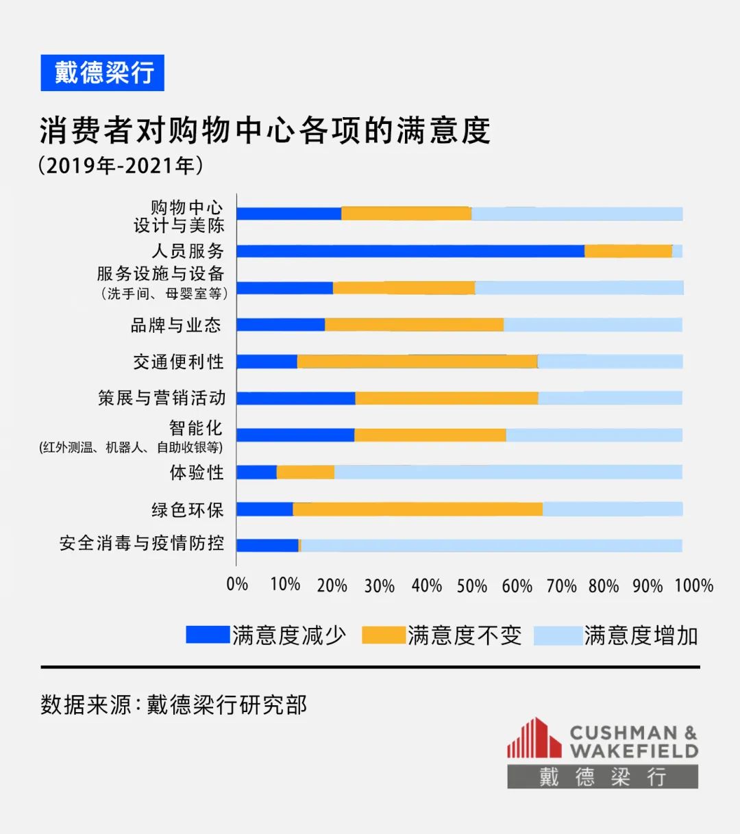但是受疫情的影響,購物中心舉辦策展、快閃店等活動有所減少,部分出入口為了人流量管控暫時封閉,服務(wù)人員數(shù)量也有所減少,使得消費者對相關(guān)的購物中心項目滿意度下降。