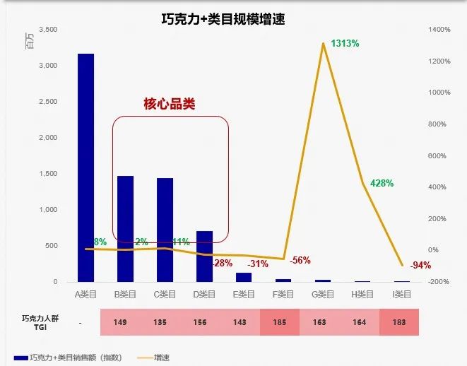 首先,按照TMIC的跨品類孵化邏輯,先要找到適合巧克力品類“跨越”的賽道。于是項(xiàng)目團(tuán)隊(duì)從大數(shù)據(jù)出發(fā),針對(duì)15個(gè)二級(jí)類目和200多個(gè)子賽道進(jìn)行全面掃描,整理出爆款產(chǎn)品或趨勢(shì)產(chǎn)品。