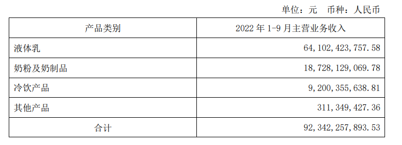 問題主要出在液態(tài)奶上。前三個(gè)季度,伊利的液體乳、奶粉及奶制品和冷飲產(chǎn)品的營收分別為641.02億元、187.28億元、92億元,去年同期分別為647.16億元,116.69億元,69.47億元。