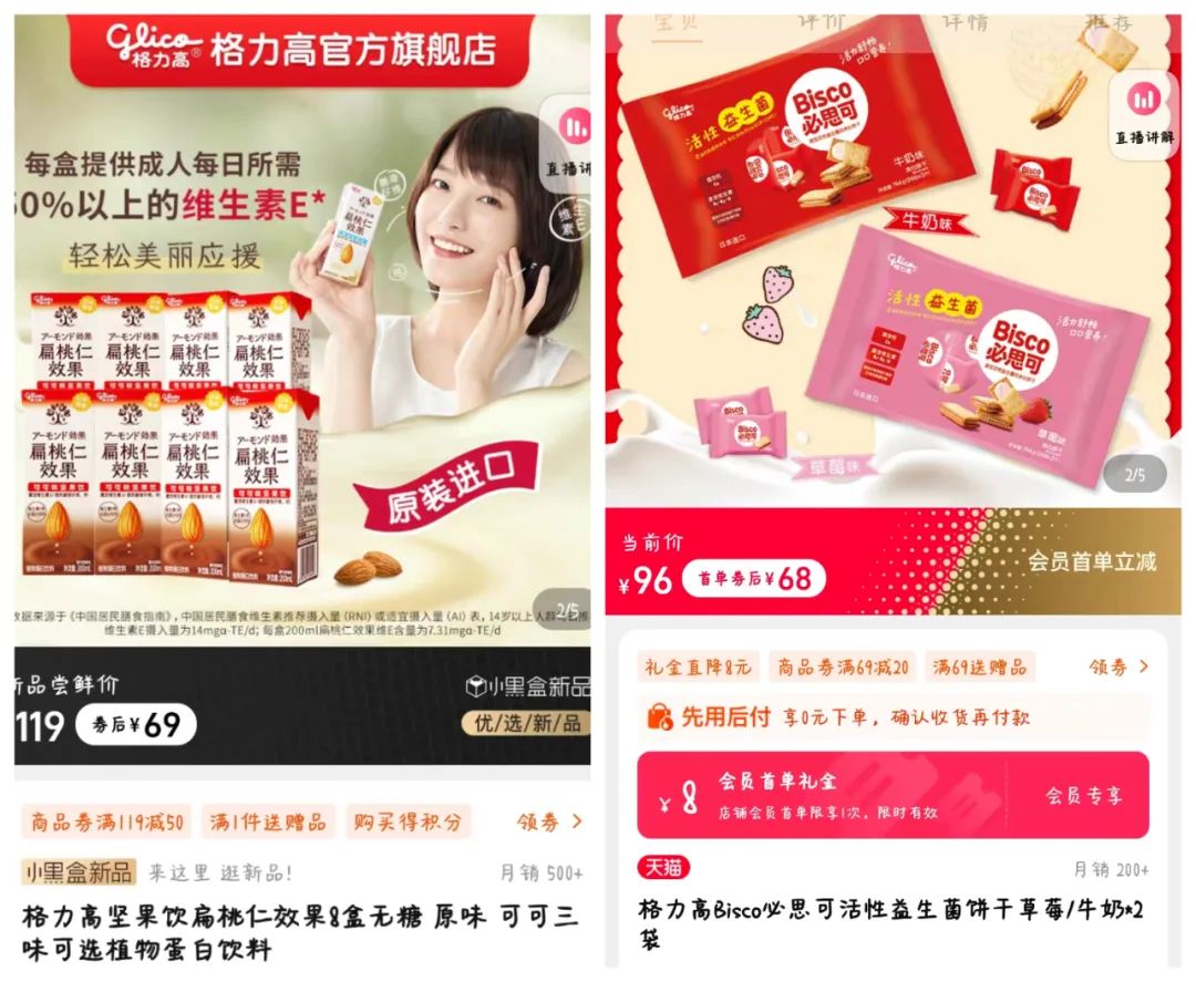 扁桃仁效果(左)和必思可(右)電商頁面 圖片來源:格力高天貓旗艦店