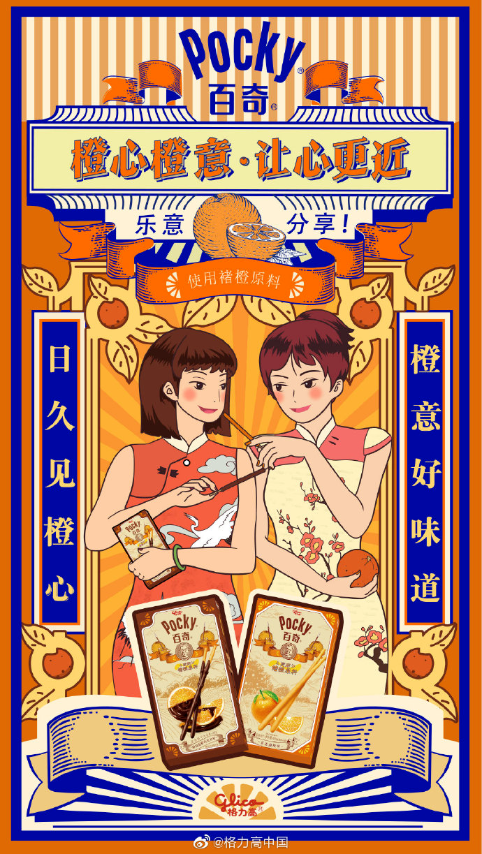 剛才提到的新奇口味,比如香菜味,還有我們和當(dāng)下有話題度的一些公司聯(lián)名的產(chǎn)品,比如和褚橙聯(lián)名的兩款「褚橙pocky」,主要目的是在網(wǎng)絡(luò)上制造話題度,用新品自然地勾起大家的討論。