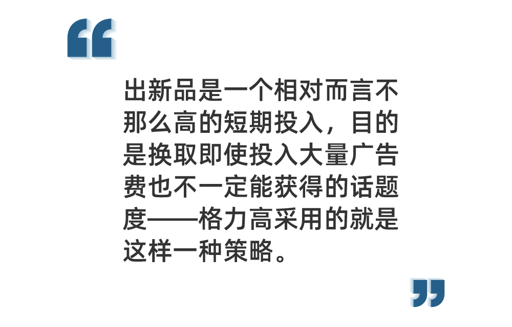 這種做法,比起投入廣告費(fèi)強(qiáng)行推到消費(fèi)者面前,效果更好。大家更愿意自發(fā)對一個(gè)新奇的口味展開討論。出新品是一個(gè)相對而言不那么高的短期投入,目的是換取即使投入大量廣告費(fèi)也不一定能獲得的話題度——格力高采用的就是這樣一種策略。