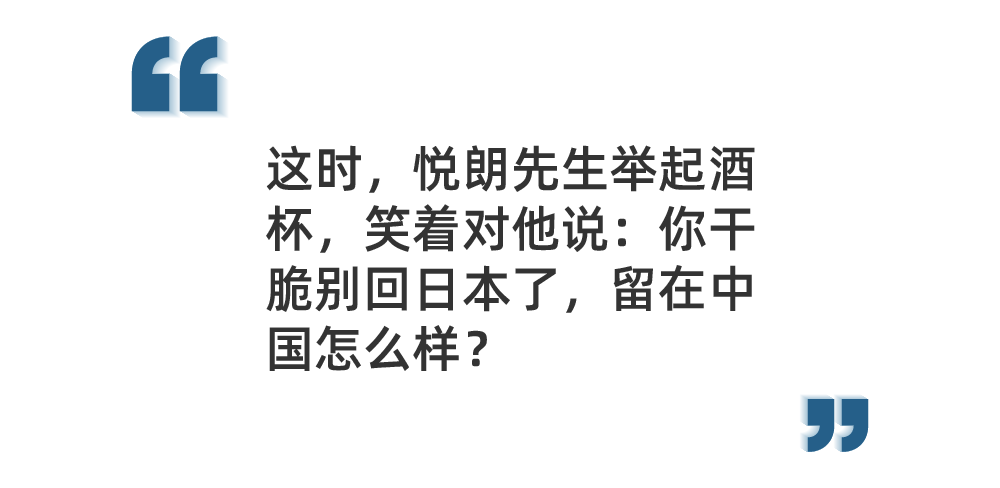 這時(shí),悅朗先生舉起酒杯,笑著對他說:你干脆別回日本了,留在中國怎么樣?