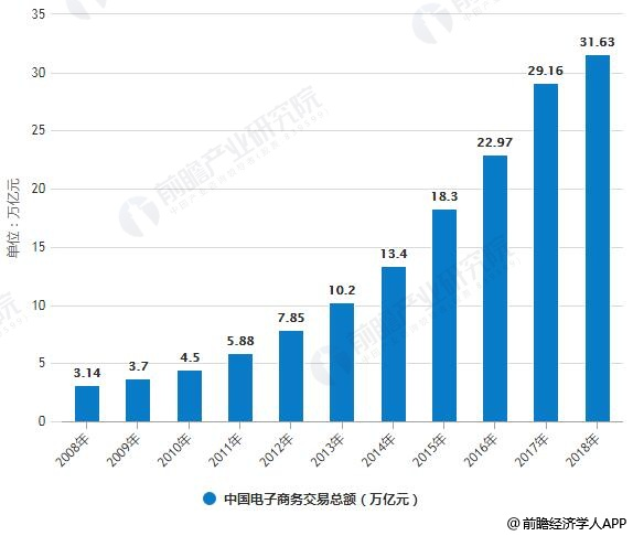 中國電子商務(wù)交易總額變化 圖片來源:前瞻產(chǎn)業(yè)研究院