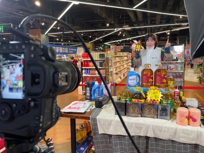 在北京物美超市雙井店,9月3日至今,直播間累計(jì)銷售額近千萬元!斑@也是物美第一家在賣場內(nèi)直播布景的門店”物美集團(tuán)全國數(shù)智化用戶與到家業(yè)務(wù)中心負(fù)責(zé)人陳俊錚表示,通過超市實(shí)景直播,物美從今年起向全國消費(fèi)者售賣米面糧油、日化等生活必需品,通過直播方式為消費(fèi)者介紹商品。據(jù)了解,“物美賣場旗艦店”也是目前平臺唯一將直播間放在超市賣場內(nèi)實(shí)地直播的商家,每日不間斷直播6-8小時,開播一個月內(nèi)就吸粉14萬,銷量同比去年增長6500%。